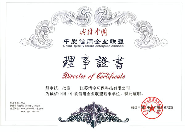 清宇中质信用企业联盟理事证书